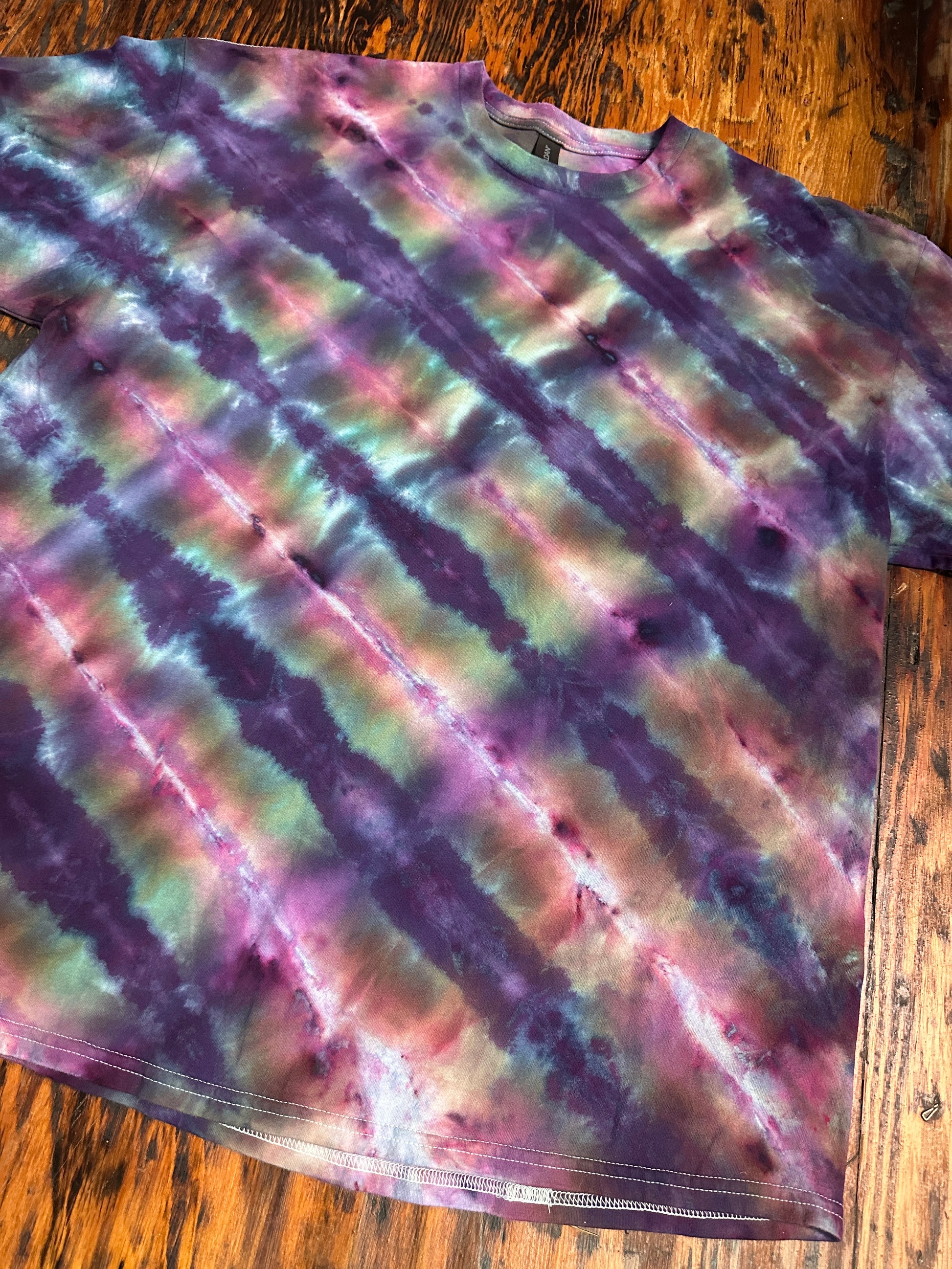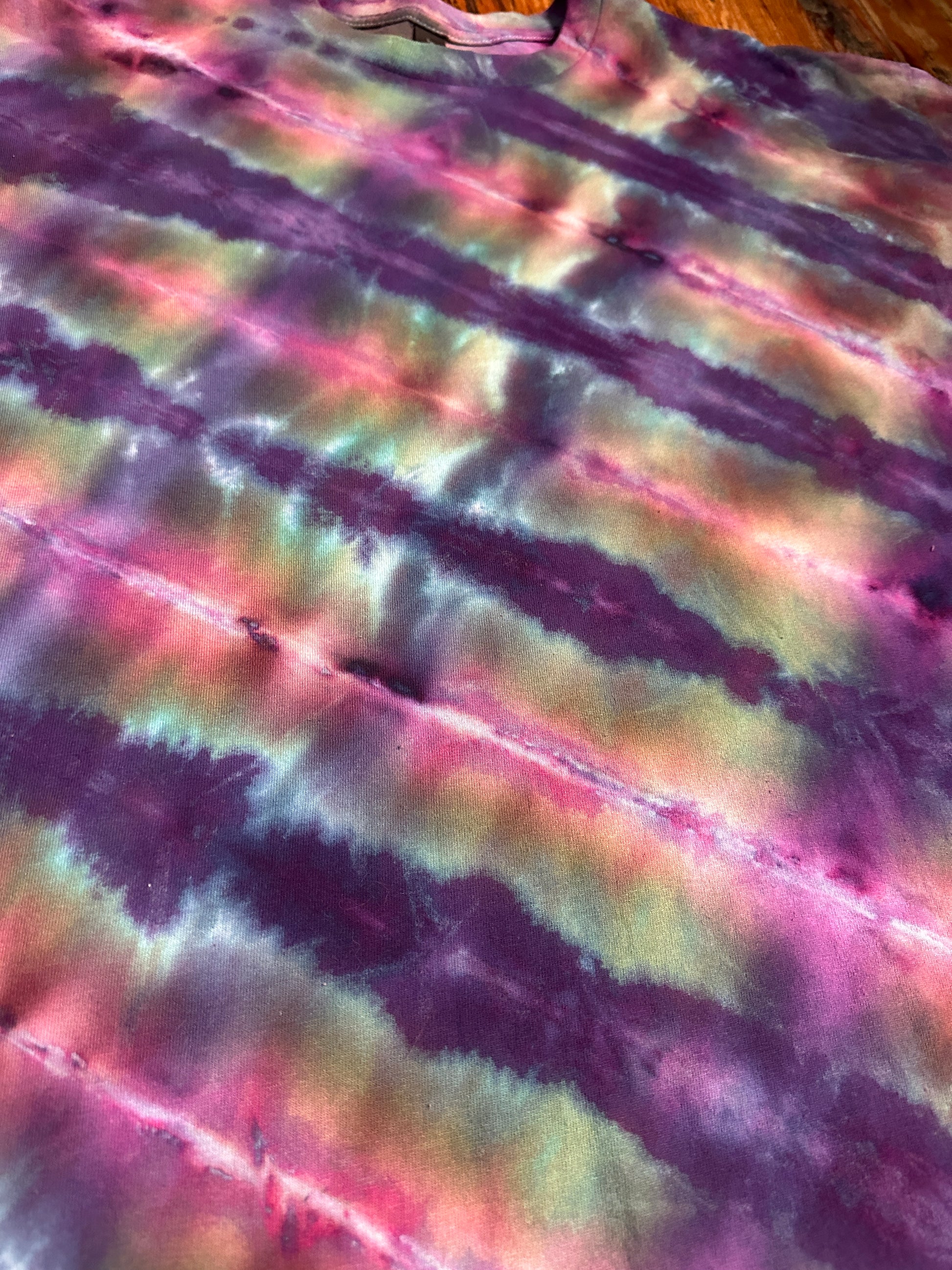 This unique design looks dimensional and has the most vibrant color splits. The purple stripes are beautiful with the mix of pinks and blues underneath.